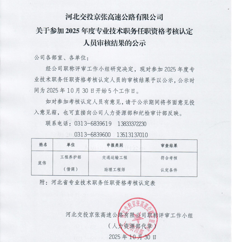 關于參加2025年度專業(yè)技術職務任職資格考核認定人員審核結果的公示